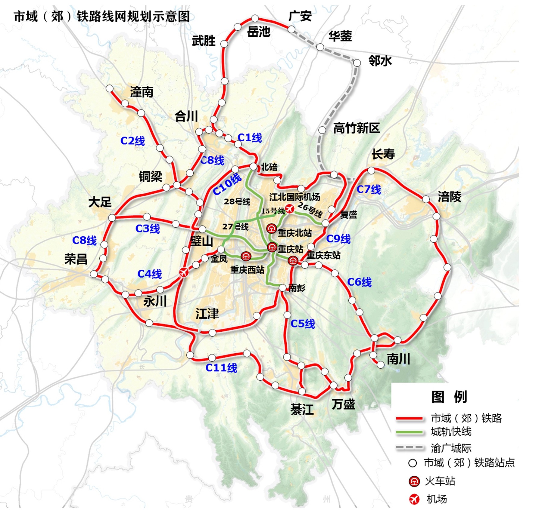 市域(郊)铁路线网规划示意图